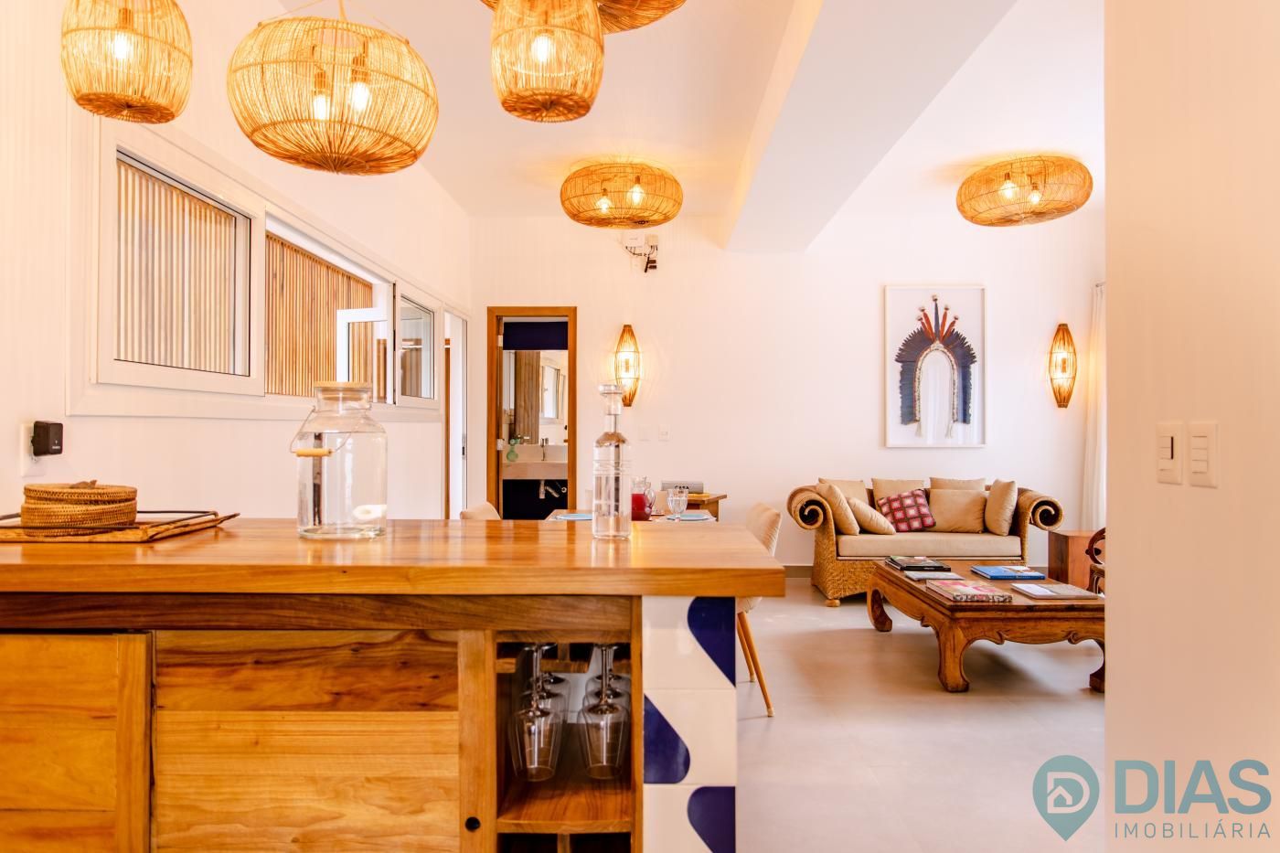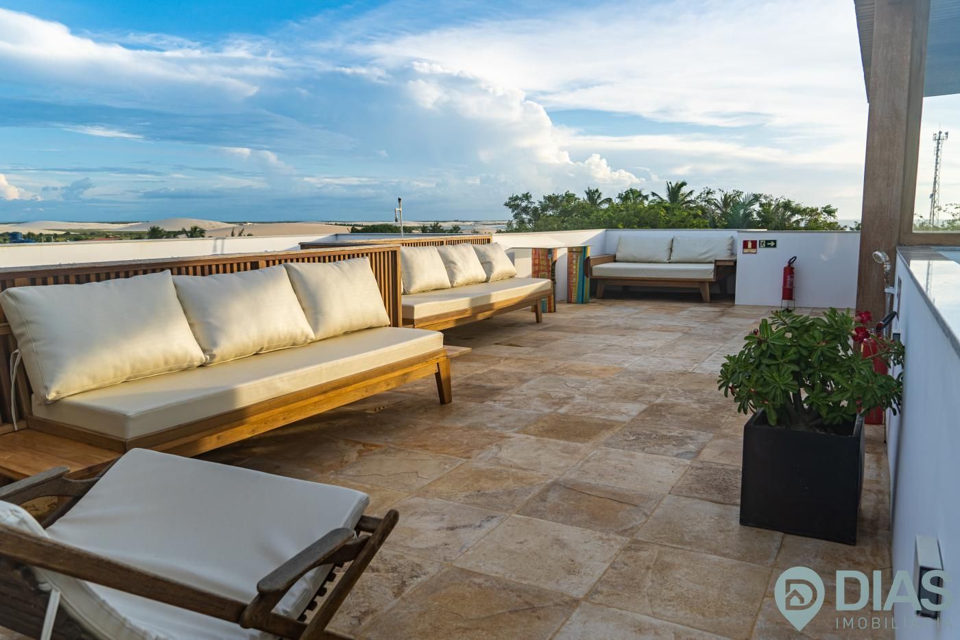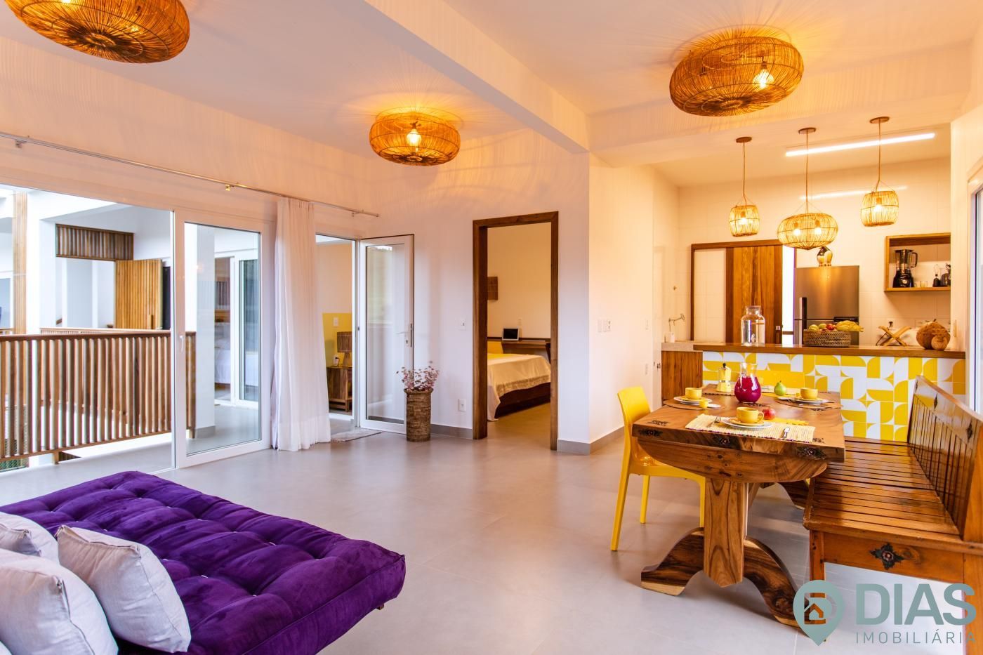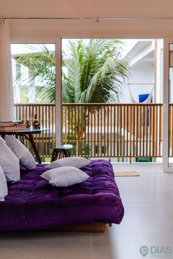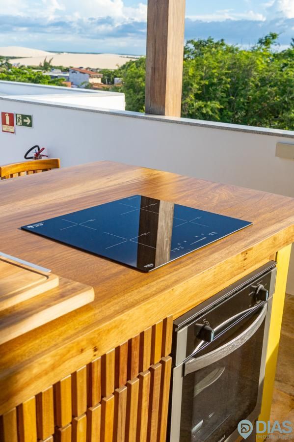 A sala é ampla e conjugada com a cozinha, tornando-a ainda mais agradável com o aproveitamento da ventilação e luz natural, interligada com uma ampla sacada que tem cortina estilo 'madeira ripada' que, ao estar fechada, da total privacidade ao morador e ao abri-la tem uma vista para as belezas da Vila de Jeri.