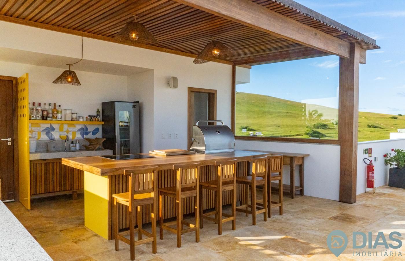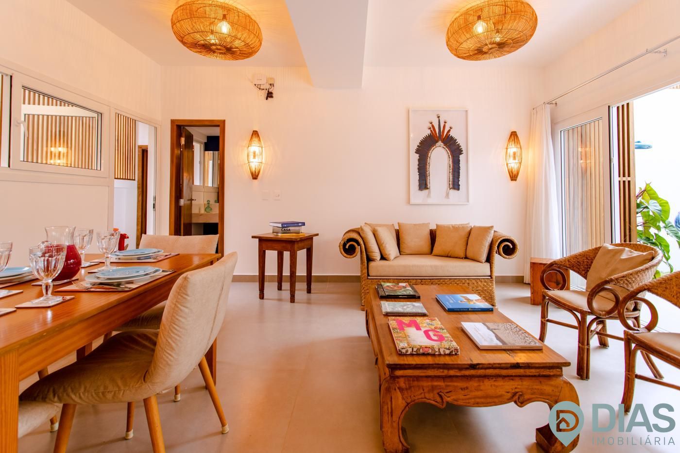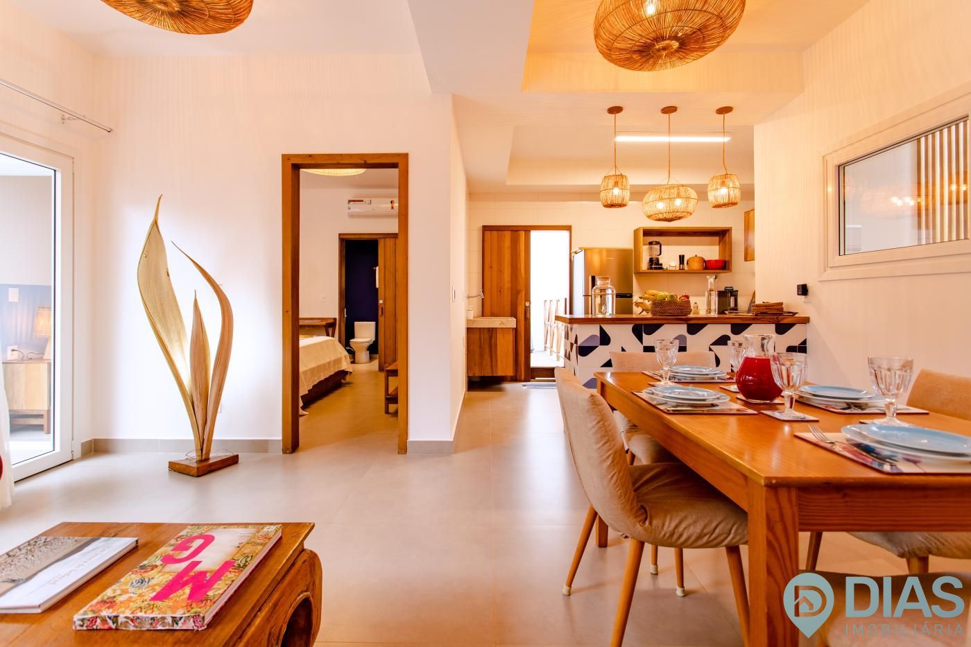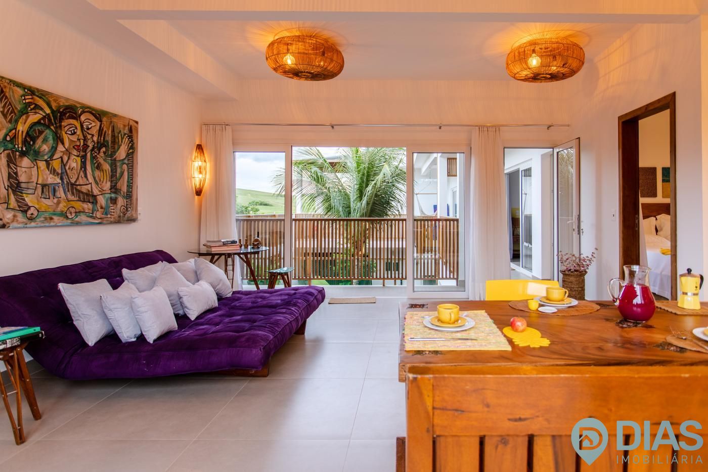 A sala é ampla e conjugada com a cozinha, tornando-a ainda mais agradável com o aproveitamento da ventilação e luz natural, interligada com uma ampla sacada que tem cortina estilo 'madeira ripada' que, ao estar fechada, da total privacidade ao morador e ao abri-la tem uma vista para as belezas da Vila de Jeri.