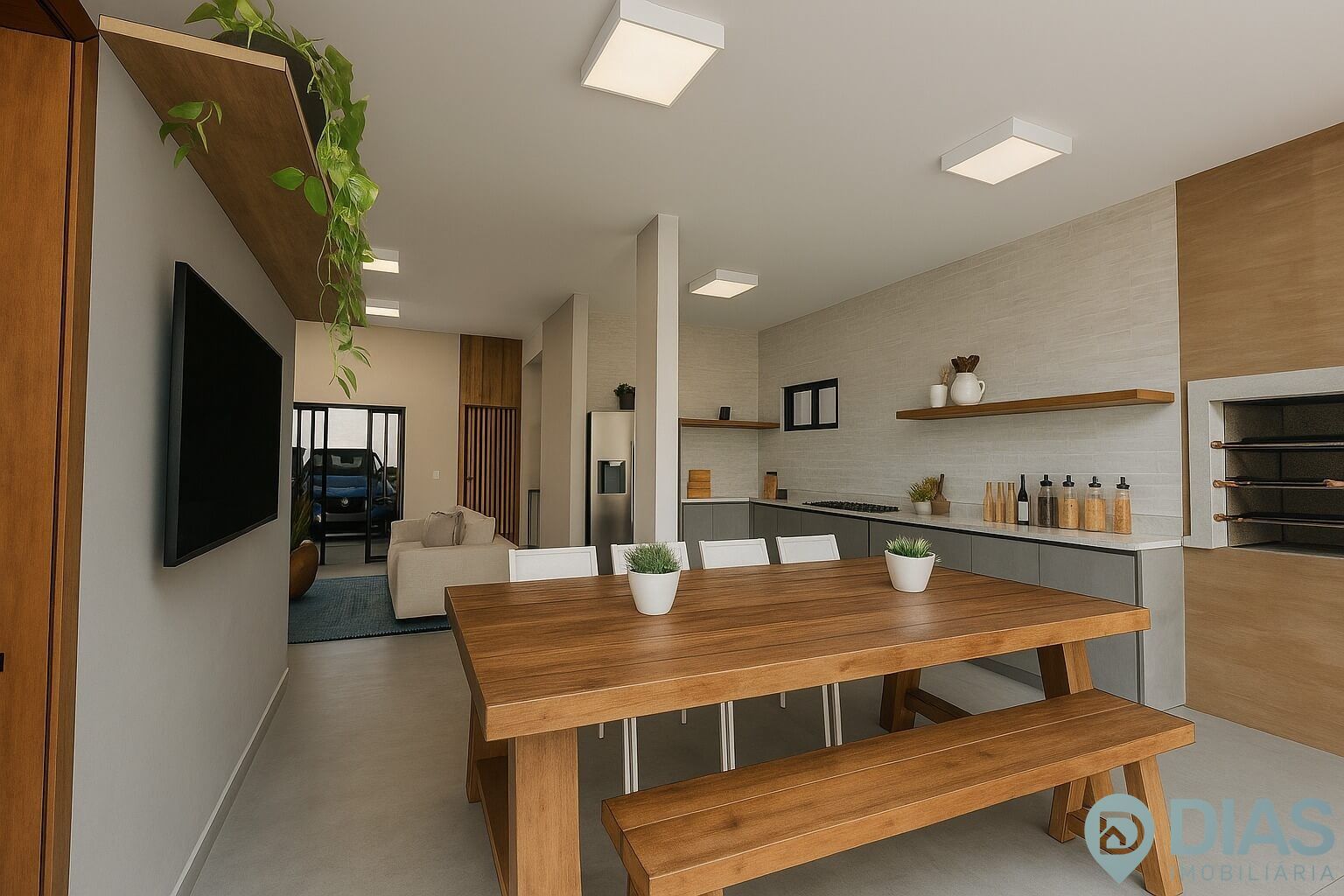 . Sala e cozinha integrados com área gourmet;
